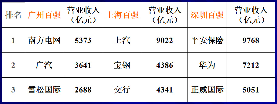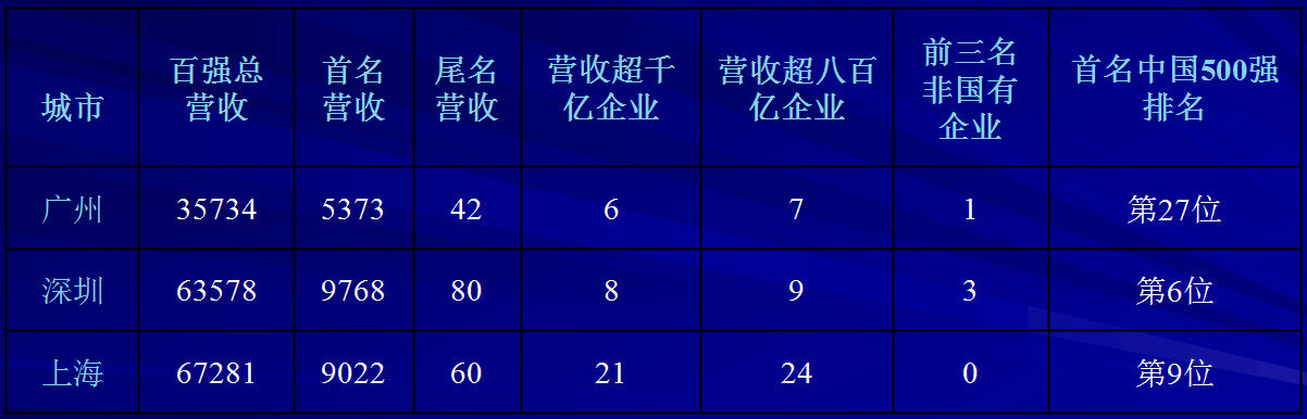穗滬深企業(yè)百強(qiáng)數(shù)據(jù)對(duì)比(億元、家)