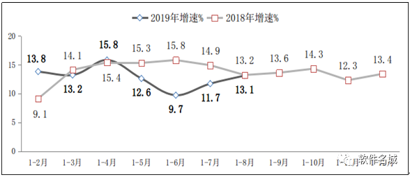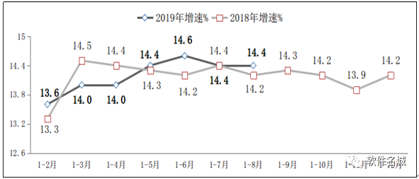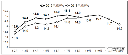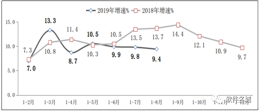 圖1 2018年-2019年1-8月軟件業(yè)務(wù)收入增長(zhǎng)情況