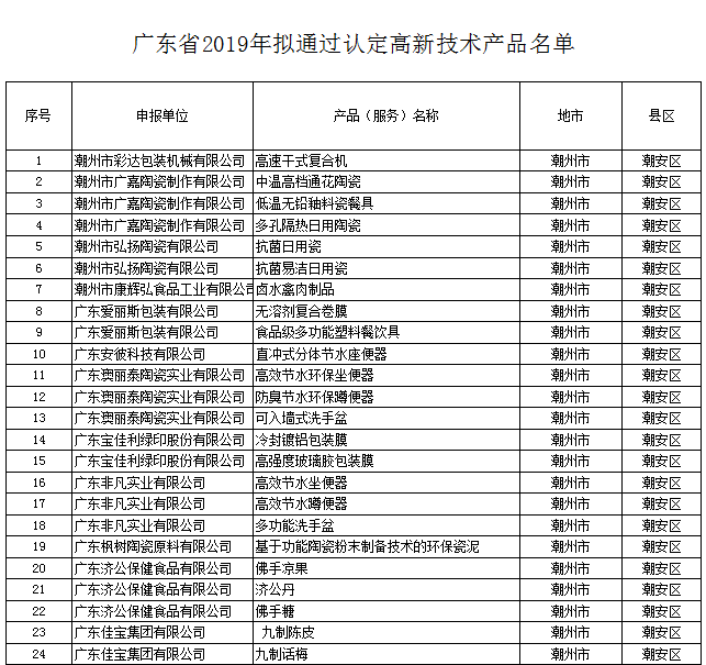 附件:廣東省2019年擬通過認定高新技術(shù)產(chǎn)品名單